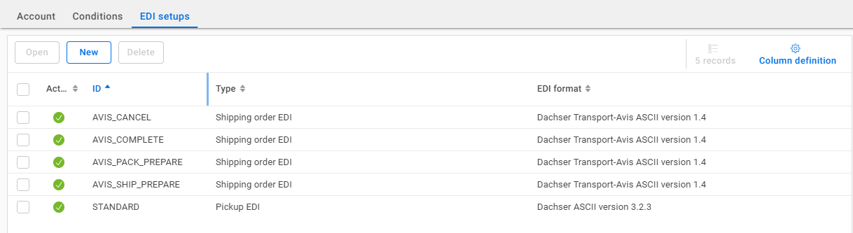 In this section the EDI upload parameters are configured. Dachser offers several different EDI types: