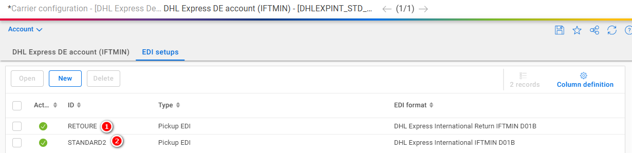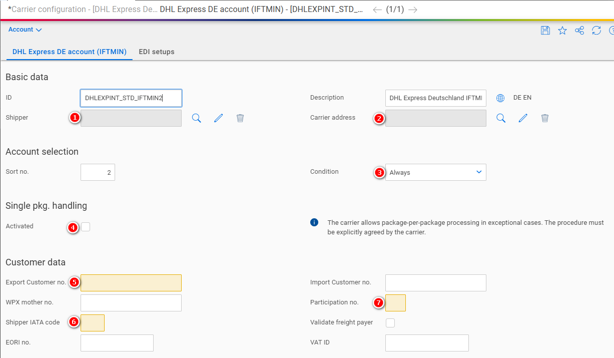 | 1 | Abbreviation | Choose a descriptive abbreviation. E.g. DHLEXP_EDI |