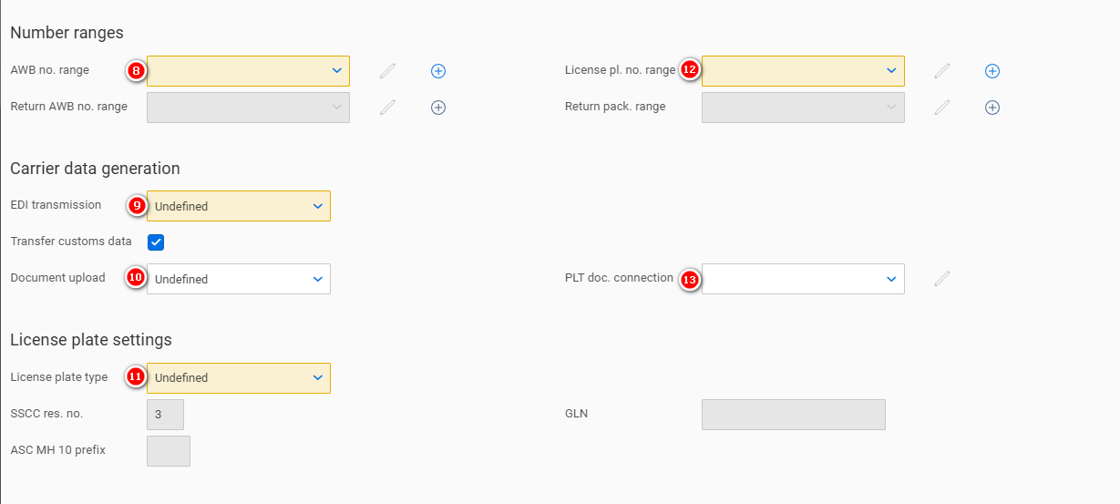 | 2 | Return pack. range | A second package number range assigned by the carrier. It's configured like the package number range. |