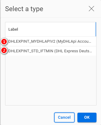 - (2) DHLEXPINT_STD_IFTMIN in all other cases. It's the standard account type for outbound shipments.