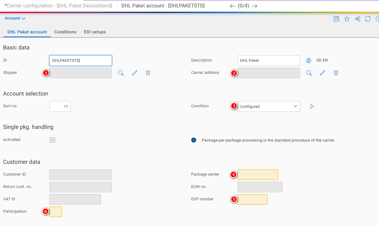 | 1 | Abbreviation | Choose a descriptive abbreviation. E.g. DHLPAKET_EDI |