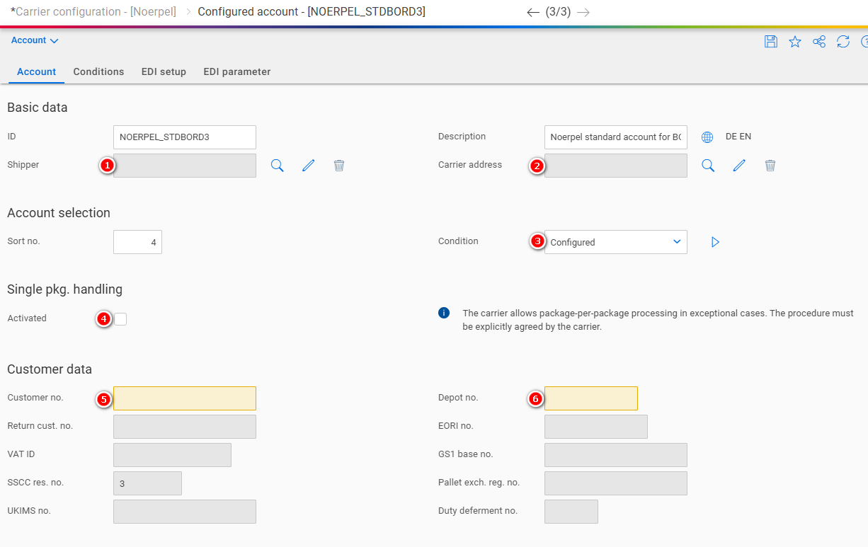 To create a new Noerpel account in Carrier Connect, open Noerpel in Master data > Carrier configurations. In the tab Accounts click on New.