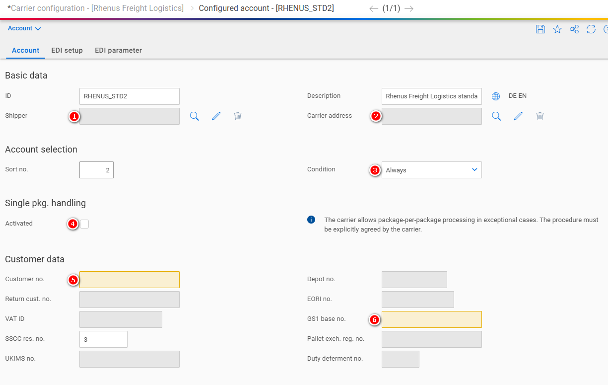| 5 | Customer no. | Assigned by the carrier |