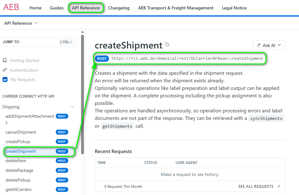Before you can start using the Carrier Connect API, you need a user and a password. AEB will provide them to you.